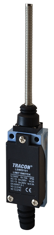 Koncový spínač s pružinovou pákou Katalógové číslo: LSME9101 1×NO+1×NC, 5A/250V AC, 100mm, IP65