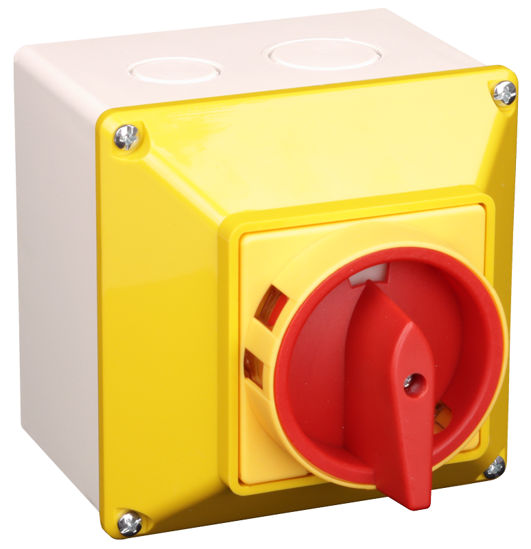 Krabicový bezpečnostný hlavný vypínač žlto-čer., žlté viečko
