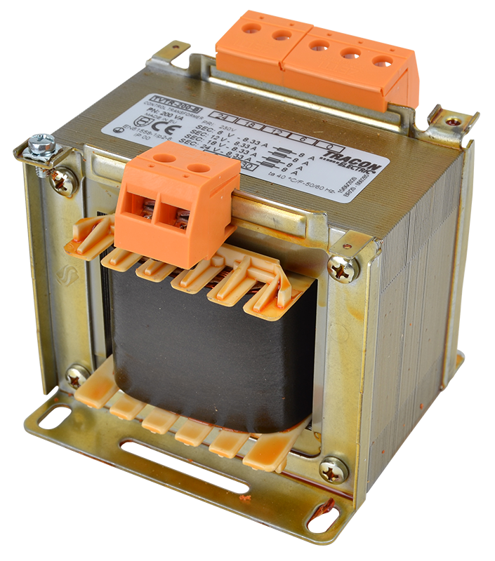 Jednofázový oddeľovací transformátor Katalógové číslo: TVTR-150-B 230V / 6-12-18-24V, max.150VA