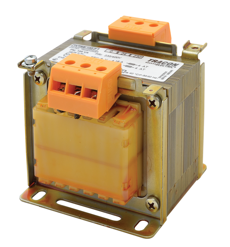 Jednofázový ochranný oddeľovací transformátor Katalógové číslo: TVTRB-100-F 230-400V / 24-230V, max.100VA