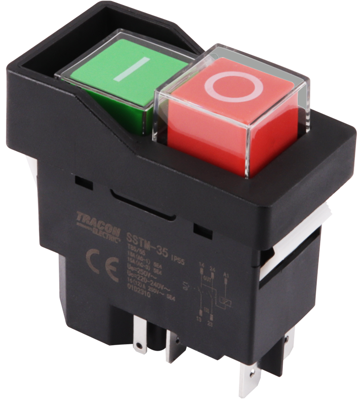 Bezpečnostné tlačidlo, upevnenie zaklapnutím, čierny rámik Katalógové číslo:SSTM-035 5PIN, 230 VAC, 12A/AC3, IP54, 6,3×0,8