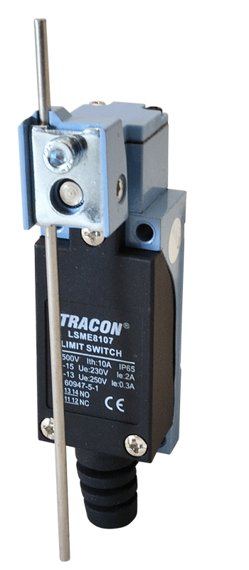 Koncový spínač s bočnou pákou a nastaviteľným hrotom Katalógové číslo:LSME8107 1×NO+1×NC, 5A/250V AC, 0-100mm, IP65