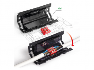 Gélové káblové spojky rady SUPER CLICK sú určené pre vytvorenie bezpečného spoju vodičov, ktoré dosahuje krytie až IP X8 (možnosť spoj ponoriť aj dlhodobo pod vodu). Gélové káblové spojky sú dodávané s 3, 4 alebo 5-pólovou svorkovnicou a sťahovacími páskami pre zabezpečenie spojky proti otvoreniu.